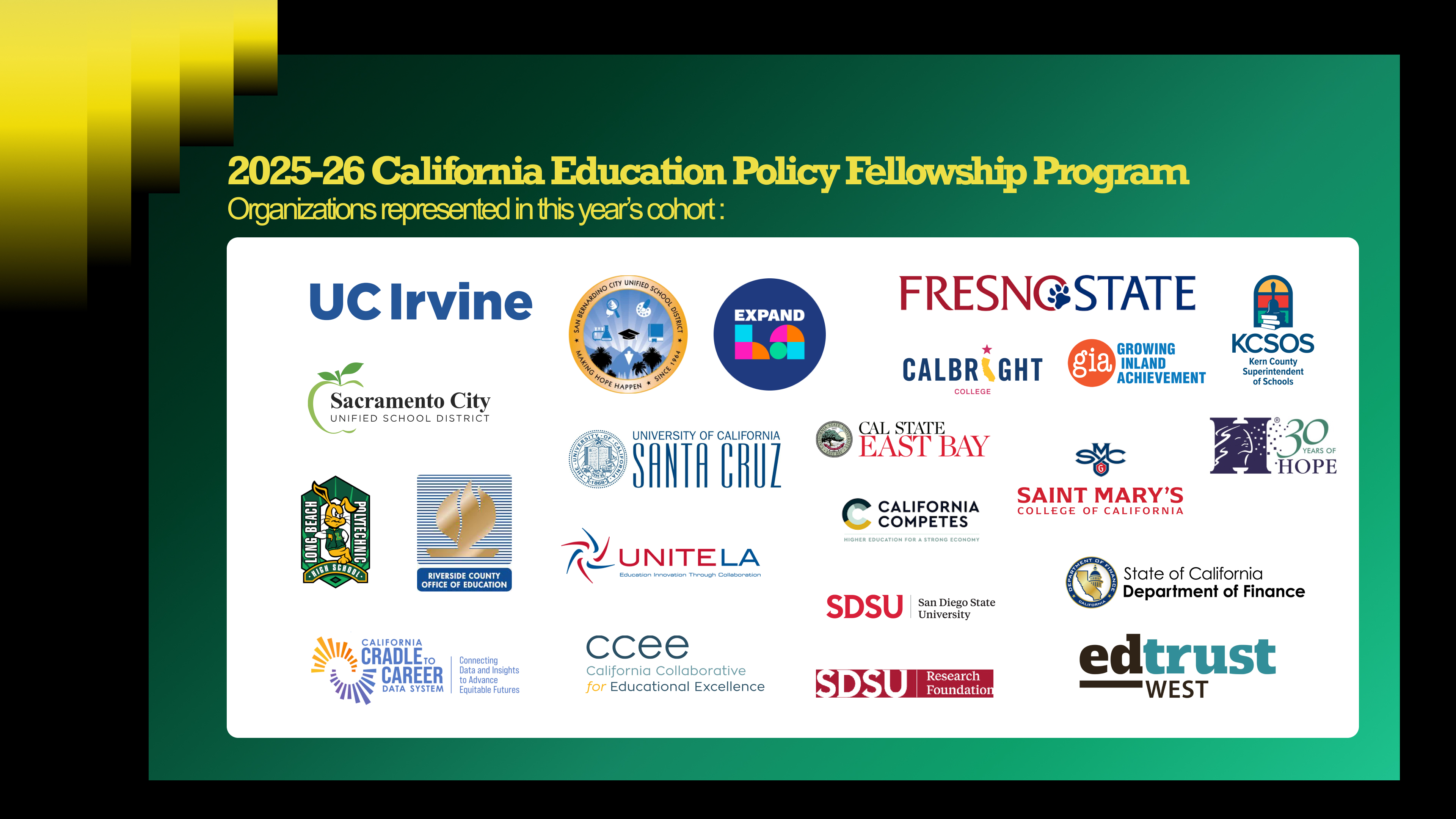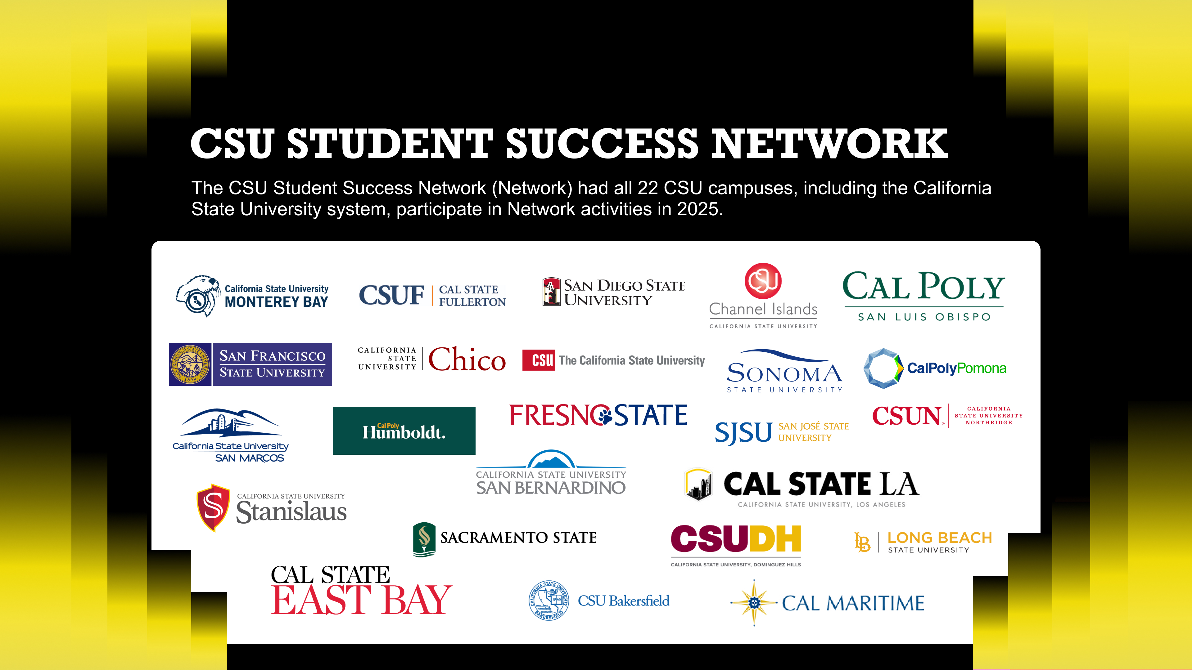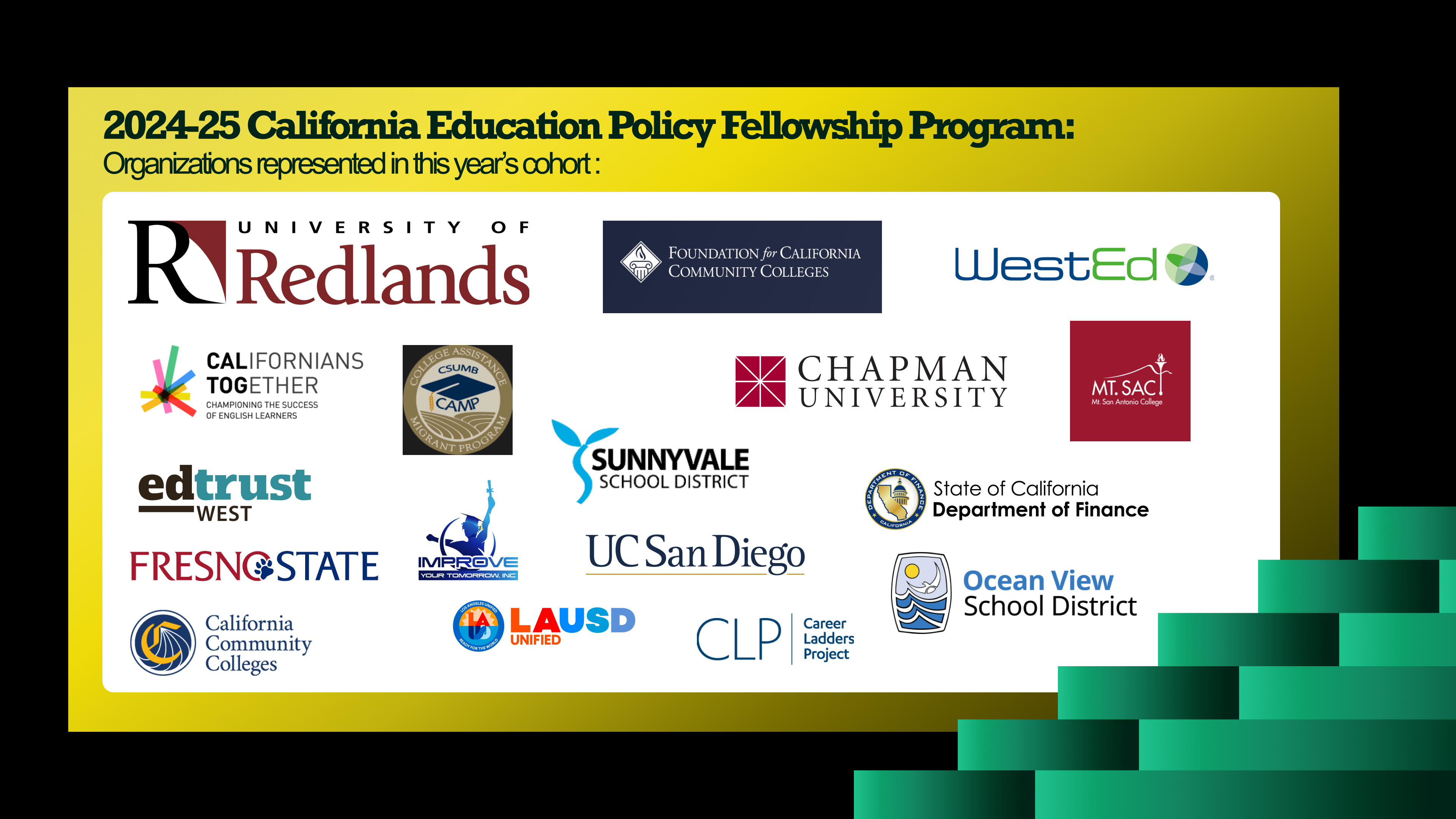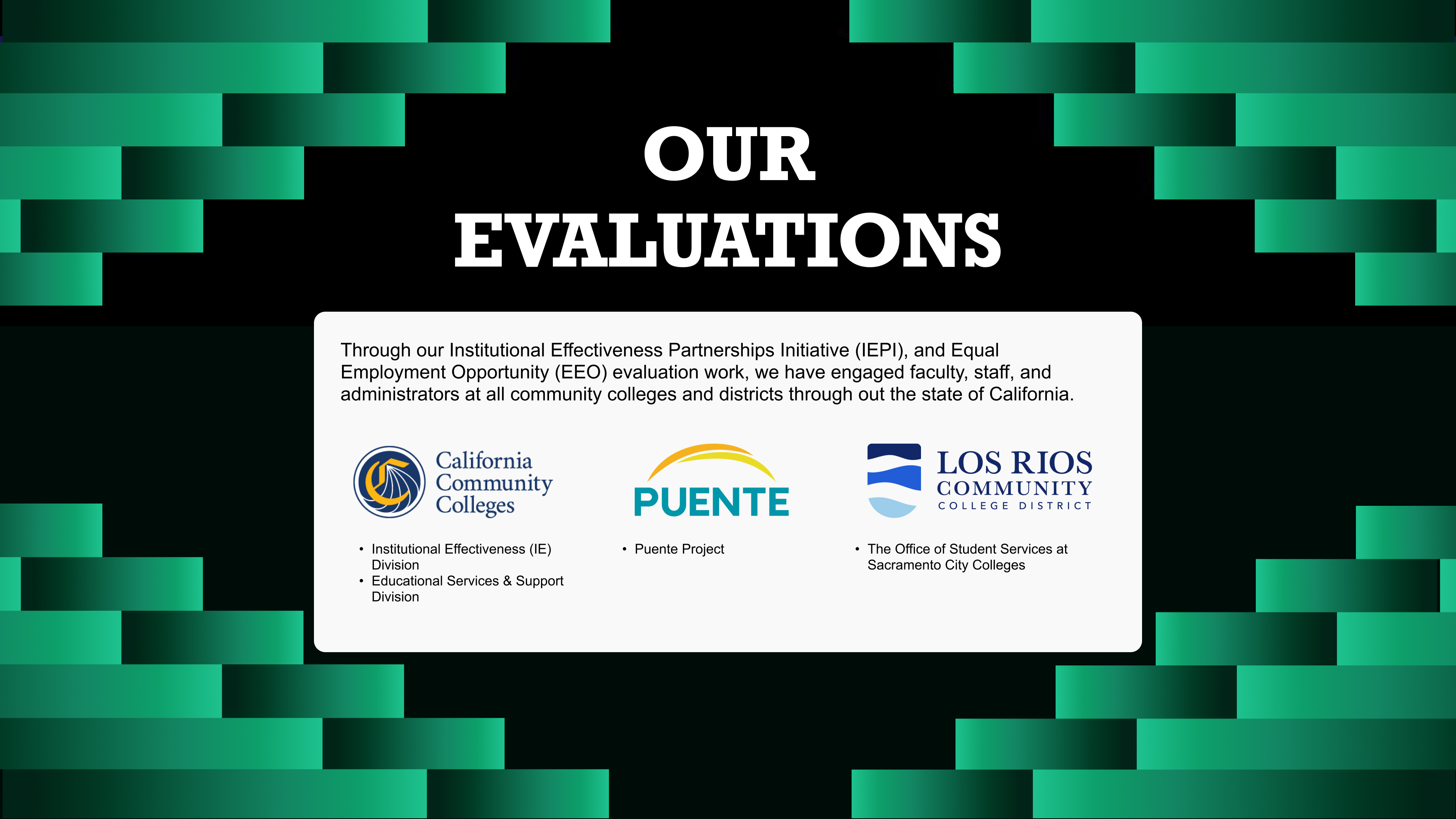 We are also proud of the partnerships and engagement we’ve fostered over the last year, including our connections with diverse funders; our recruitment of California Education Policy Fellowship Program Fellows who hail from organizations across the state; the CSU Student Success Network engagement of students, staff, faculty, and administrators from all of the CSU campuses and the system office; and our evaluation efforts engaging employees from every California community college and district.