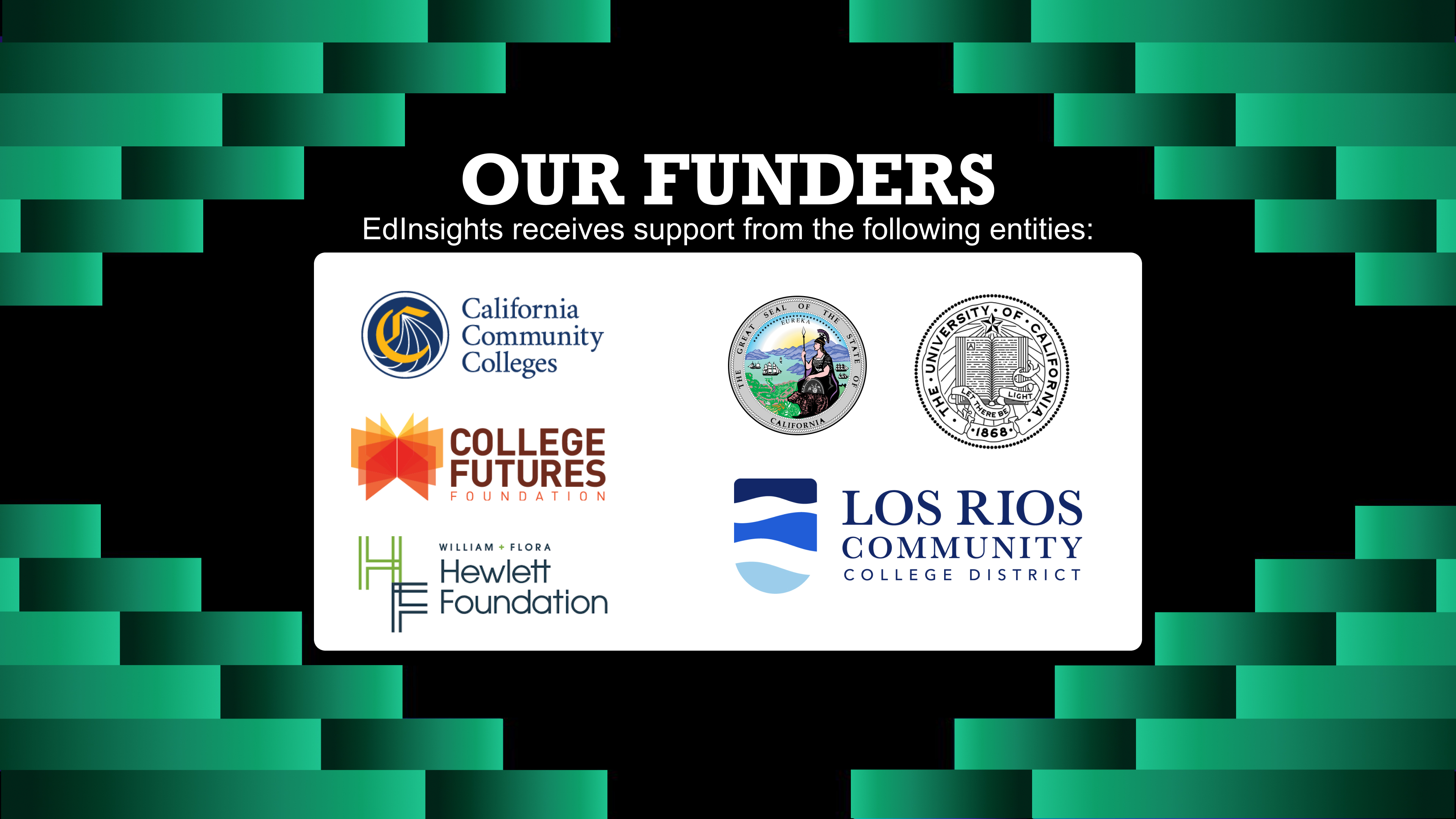 While the current sociopolitical climate is extraordinarily tumultuous and has created barriers to the advancement of equity efforts in higher education, EdInsights remains steadfast in our purpose—to advance antiracist policy and practice in higher education so that students from minoritized groups have equitable opportunities and outcomes in their public education and career journeys. We look forward to collaborating with you to continue our work advancing equitable outcomes for California’s students in 2026.